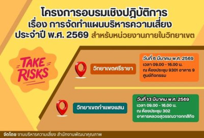 โครงการอบรมเชิงปฏิบัติการ เรื่อง การจัดทำแผนบริหารความเสี่ยง ประจำปี พ.ศ.2569 ระดับส่วนงาน...